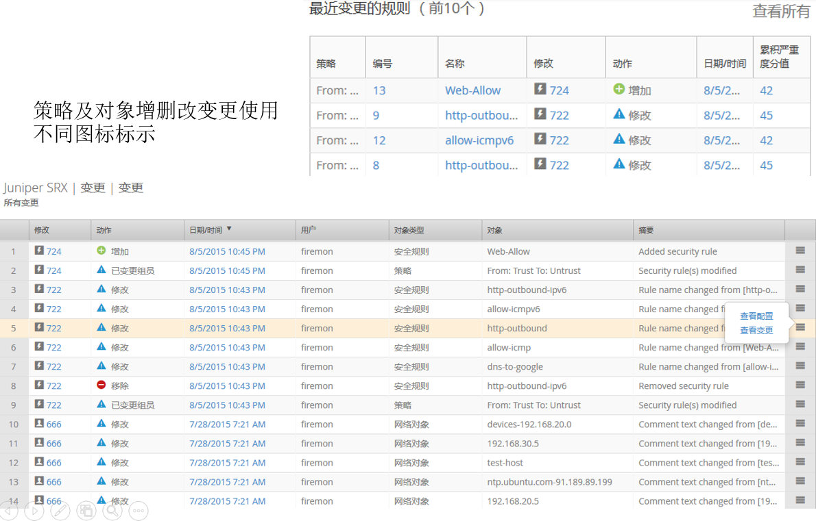 ÖÎÀíyuan¿ÉʹÓÃFiremon ²úÎïÉó²é±»ÖÎÀí×°±¸µÄÉèÖá¢ÉèÖñ任¼Í¼£¬°üÂޱ任¼Í¼µÄÏêϸÐÅÏ¢£¬ºÎʱ¡¢ºÎµØ¡¢ºÎÈË¡¢×öÁËÔõÑùµÄ±ä»»£¬¶øÇҿɽÏÁ¿²îÒìʱ¼äµãµÄÉèÖõÄÒìͬ£¬²¢Ïêϸ±êÖ¾²îÒìÖ®´¦£¬Ê¹µÃÖÎÀíyuanÇåÎúµØÏàʶÉèÖõÄת±ä£¬ÒÔ¼°×ª±äµÄÀú³Ì¡£