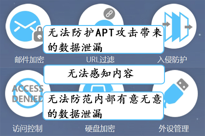´«Í³Çå¾²ÊÖÒÕÖеķÀ»ðǽ¡¢IPS¡¢IDS¡¢ÈÏÖ¤¡¢¼ÓÃܵȷ½Ê½ºÍÊÖ¶ÎÔÚ·´¿¹ÍⲿÍþвʱ¿ÉνÊÇ¡°ÍǽÌú±Ú¡±£¬µ«ÓÉÓÚ×ÔshenÌØÕ÷£¬¶¼²»¾ßÓÐÄÚÈݸÐÖªÄÜÁ¦ºÍÄÚÈÝʶ±ðÄÜÁ¦£¬×ÔÈ»ÔÚÊý¾Ý·À×ß©ÉÏ£¬ÏÔµÃÓÈΪÎÞÁ¦¡£